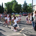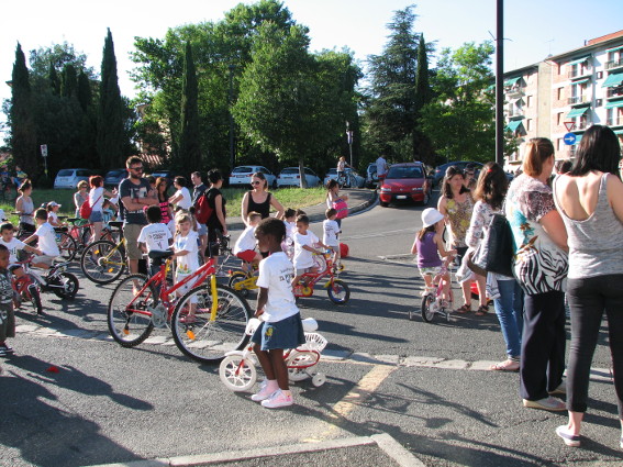 Tutti in bicicletta a Poggibonsi per festeggiare la fine della scuola in maniera ecologica. Bambini, famiglie, insegnanti della scuola dell'infanzia, Il Picchio Verde tutti in bicicletta con e senza ruotine, monopattini, pattini in linea, macchinine a pedale per i più piccolini, docenti e collaboratori con lo zaino in spalla, babbi e mamme con i seggiolini per trasportare i fratellini più piccoli e i bebè, molti a piedi. Tutti indossavano una splendida maglietta con il logo della scuola Picchio” per riconoscersi sulla strada verde, la pista ciclabile lungo il torrente Staggia, che dalla scuola porta ai giardini della Magione. Il tutto si è concluso ai giardini del parco della Magione con un festante e invitante pic-nic sull’erba dove le famiglie avevano steso tovaglie e coperte e preparato variegate e appetibili pietanze da condividere con tutti.