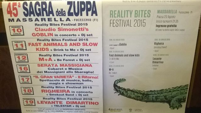 Massarella ritorna, come ogni anno, al centro del panorama musicale nazionale: la piccola frazione di Fucecchio sarà teatro per il 45° anno della Sagra della Zuppa, da venerdì 10 a domenica 19 luglio. Oggi, giovedì 9, il sindaco Alessio Spinelli, affiancato dal presidente del GSI di Massarella Ferrero Rosati e dal il Ceo del Reality Bites Festival Leonardo Giacomelli, ha reso noto alla stampa il programma della tradizionale iniziativa.