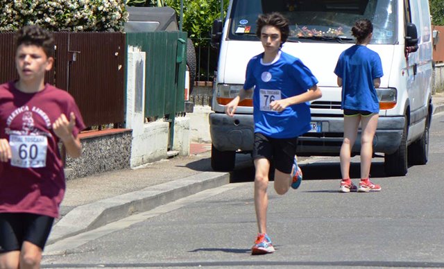 Augusto Casella, infatti, ha conquistato il titolo regionale concludendo il percorso di 2km in 7’06”0, facendo sempre gara con il gruppo di testa ed attaccando all’inizio del lungo rettilineo finale. Per Casella si tratta del terzo titolo regionale individuale dopo quelli conquistati nella prova di corsa campestre e sugli 800m indoor. Ottimo risultato per la squadra che conquista infatti l’argento, grazie al 6° posto di Matteo Giuseppe Lemmi, al 20° di Emanuele Vezzi, al 27° di Matteo D’Addesa ed al 28° di Giovanni Vezzi: ognuno di loro è stato determinante per il risultato finale, ottenuto grazie ad una corretta impostazione del ritmo di gara, senza lasciarsi intimorire dal gran caldo e dall’orario decisamente improbabile per il tipo di gara, che ha avuto il suo avvio alle 12.45.