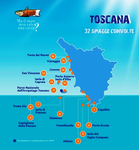Saranno 32 le località della Toscana coinvolte nell’iniziativa, tra le spiagge e gli stabilimenti balneari di Capalbio, Porto Ercole, Albinia, Talamone, Livorno, San Vincenzo, Viareggio, Forte dei Marmi, Castiglione della Pescaia, Fonteblanda, Punta Ala.