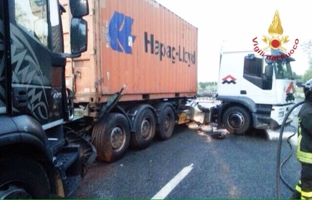 Due mezzi pesanti sono entrati in collisione intorno alle 19:30 di oggi, giovedì 10 settembre, sulla Fi Pi Li, all'altezza di Santa Croce sull'Arno in direzione Firenze. Il traffico è quindi bloccato. Nell'urto uno dei due camion ha subito la rottura del serbatoio e il liquido ha invaso la strada.