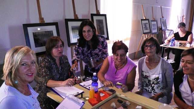 Il terzo giorno le cose si fanno davvero dure: è il turno dei “sassi”. Ai docenti il compito di esaminare in prima persona alcuni campioni di minerali: li toccano, li pesano, li passano sotto le lenti e al microscopio, li sfregano su lastre di ceramica, li rompono con un martello, provano la loro reazione al contatto con l’acido…