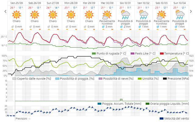Sull'Italia permane una latente lacuna barica, incastonata fra due campi anticiclonici, uno posizionato sul Regno Unito di matrice Azzorriana, l'altro sulla Russia; destinati a dominare la scena europea per diversi giorni, forse fino alla fine dello step previsionale, rimandando le prime vere precipitazioni autunnali al termine della prima decade di ottobre.
