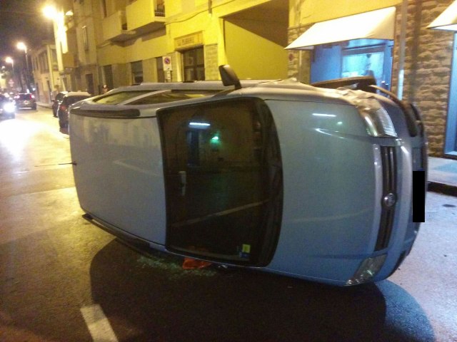 Una Fiat Panda con all'interno due persone si è ribalta stasera, venerdì 2 ottobre, intorno alle 22 in via Ponzano per cause ancora in via di accertamento.