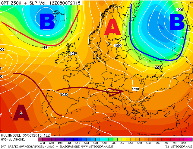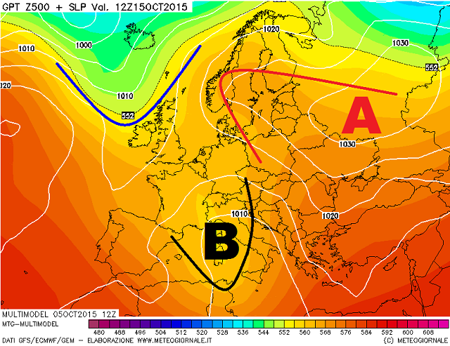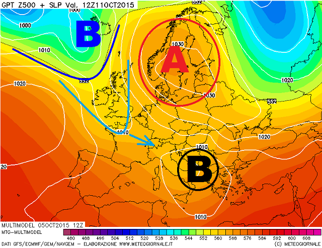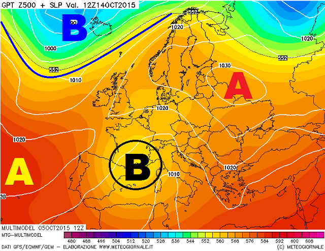 Torneranno quindi le piogge ed i temporali, ed i modelli propendono per un'ulteriore permanenza dell'instabilità atmosferica anche nei giorni successivi, a causa di una situazione barica di blocco che potrebbe rivelarsi potenzialmente pericolosa. Il quadro del resto, vedrà il già citato anticiclone europeo spostarsi verso est e chiudere la porta di "uscita" dal Mediterraneo al nucleo incastonato sulla Francia; mentre da ovest tornerà a premere l'anticiclone delle Azzorre, provocando una graduale chiusura del flusso zonale alle latitudini britanniche.