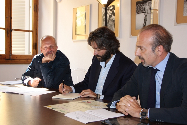 - Da sinistra Antonio Ponzo Pellegrini, assessore al commercio, Lapo Cantini e Romano Tinti (Confesercenti)