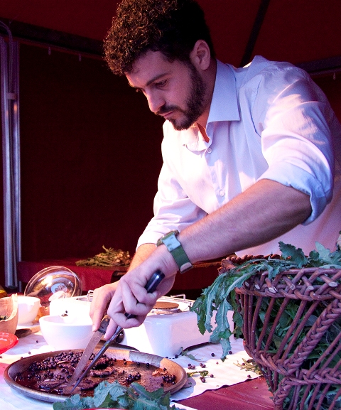 Lo chef Simone Acquarelli incontra l’artista visiva e performer Cinzia Fiaschi creando dal vivo un piatto a base di tartufo, la visual performer interagirà con lui esaltando su tela le emozioni da cui nasce il piatto.