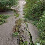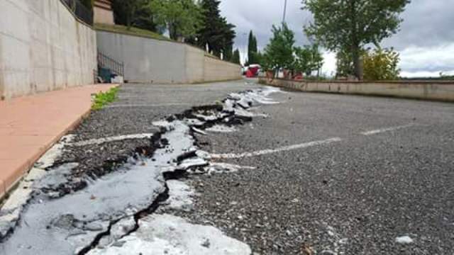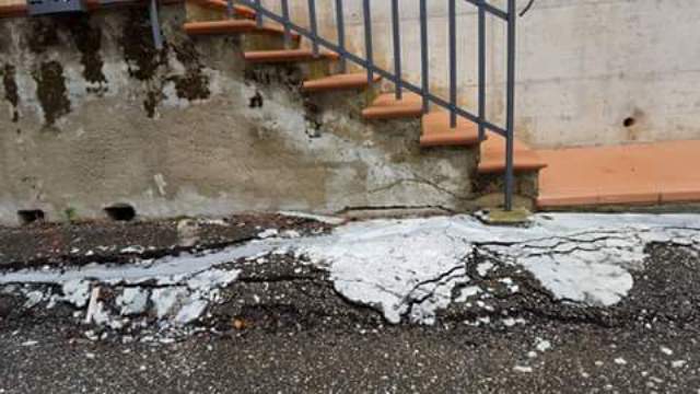 Le immagini inviatequesta volta a gonews.it assomigliano a una copia ben più grottesca di quelle pubblicate il 9 luglio 2015. Il materiale sigillante che i condomini di un fabbricato coinvolto nella frana hanno comprato (a loro spese) e fatto stendere sul manto stradale non ha sortito effetti.