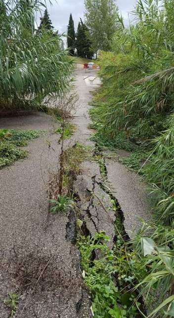 Il Comune c'è, i tecnici rispondono. Manca però una soluzione completa ed efficace a una situazione pericolosa per l'abitato. Nel frattempo, come le immagini documentano, l'erba e le erbacce continuano a crescere rigogliosamente nelle crepe dell'asfalto...