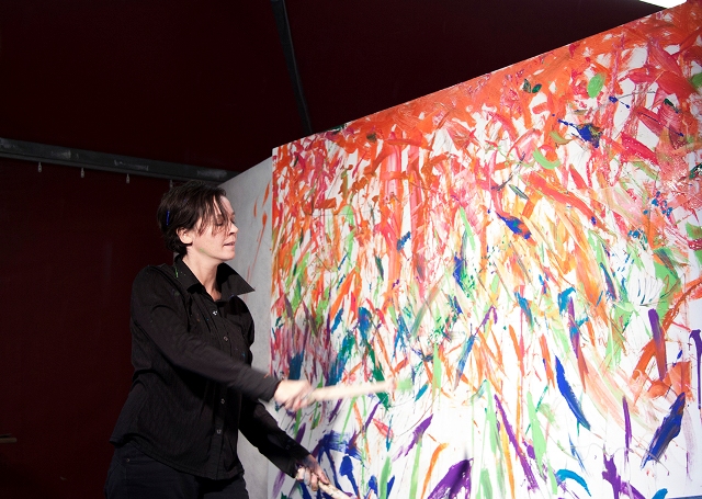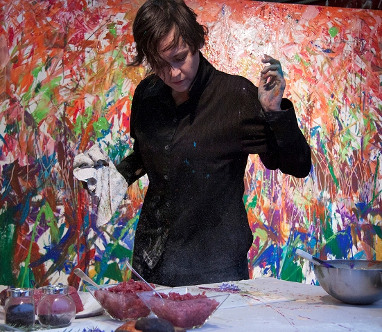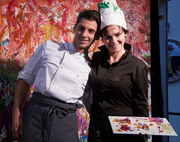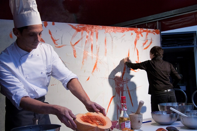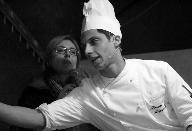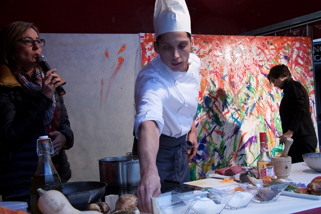 Il pomeriggio è andato in scena il CookongART Show. Protagonisti il giovane chef Simone Acquarelli e l’artista visiva e performer Cinzia Fiaschi che, con entusiasmo e un filo d’incoscienza hanno deciso di unire le loro “arti”.