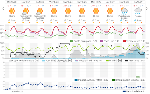 Solo al termine dello step previsionale, pur fra tanti dubbi sulla reale tempistica del cambio circolatorio, si profila un ritorno delle perturbazioni collegate alla depressione d' Islanda, attore decisivo per immettere sul proscenio mediterraneo una maggiore o minore ingerenza delle tipiche depressioni autunnali. Al momento i modelli quantificano il cambio barico tra le giornate del 28 e quella del 29 ottobre, ipotizzando una conclusione mensile in mano al tempo instabile, se non a tratti perturbato.