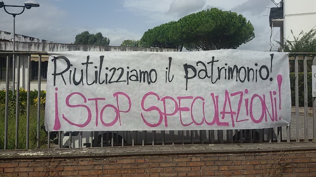 L’ex Gea, inoltre, è inserito nel piano di alienazione dell’ateneo: l’Università, quindi, sta cercando un compratore, e per questo ha già richiesto al comune di Pisa una variante della destinazione d’uso, per renderlo più appetibile sul mercato immobiliare. Viste le attuali condizioni dell’immobile, ci pare facile intuire che una eventuale cessione non potrebbe che essere una svendita al ribasso. Inoltre, è già stato resa pubblica la notizia che tra i possibili compratori ci sia l’immobiliarista Madonna, già coinvolto in speculazioni con l’università per la trasformazione del complesso delle ex-Benedettine nel residence di lusso segnalato dagli studenti nella giornata di ieri.