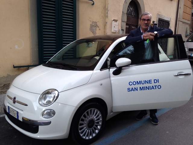 Una Fiat 500 di colore bianco è la nuova macchina a disposizione del Comune di San Miniato. “Ci è stata consegnata giovedì dalla Scotti Spa, dopo aver stipulato un contratto di comodato gratuito – spiega il sindaco di San Miniato Vittorio Gabbanini -. Le spese annuali sostenute dal Comune saranno unicamente quelle per il bollo, l’assicurazione e, ovviamente, la benzina e la manutenzione”. Si tratta di un’auto che sarà utilizzata dai dipendenti per svolgere le mansioni di servizio e dagli amministratori per le visite di rappresentanza. “Siamo molto soddisfatti di avere trovato un accordo con la Scotti e ringraziamo l’azienda per questa grande opportunità – conclude il sindaco -. Tra un anno scadrà il contratto, ma abbiamo la possibilità di rinnovarlo e, se ci saremo trovati bene, sicuramente lo prolungheremo”.