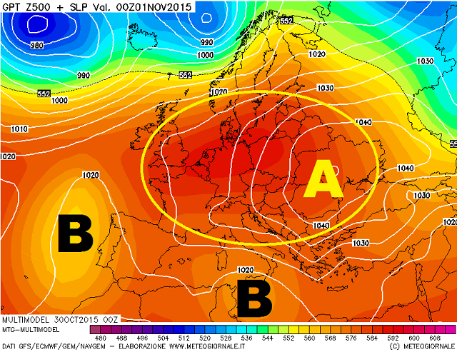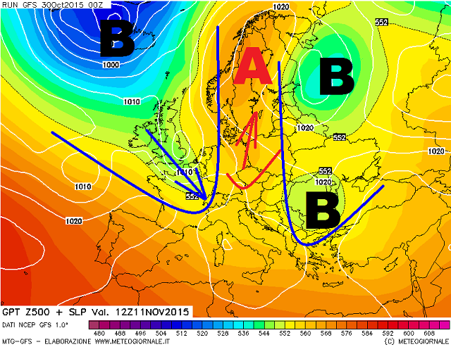 Dopo il peggioramento di questi ultimi giorni, il tempo andrà migliorando, grazie ad un poderoso anticiclone Europeo che al momento ha i suoi massimi geopotenziali sulla Romania.