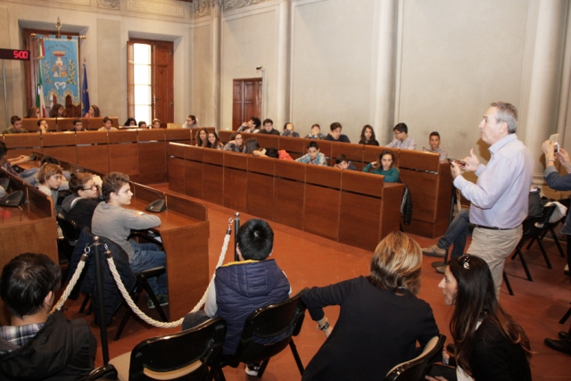 Erano accompagnati dagli insegnanti Claudia Giuntini, Antonella Bertini, Alessandro Poli e Miranda Mannina, quest’ultima non nuova nel palazzo comunale visto che è consigliere comunale, eletta nel maggio 2014, e partecipa regolarmente alle sedute dell’assise cittadina.