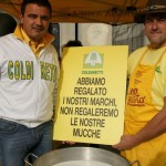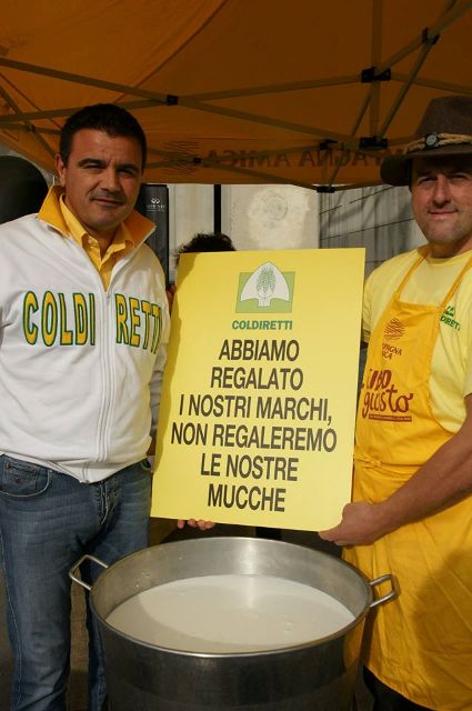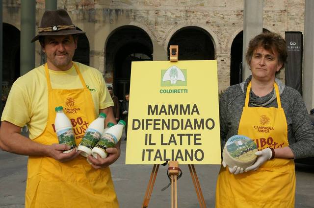 Una delle tante iniziative dei produttori Coldiretti contro la decisione unilaterale dell'industria che ha tagliato i compensi per il latte alla stalla di oltre il 20% rispetto allo scorso anno, proponendo accordi capestro che fanno riferimento all'indice medio nazionale della Germania, con una manovra speculativa ingiustificata e quindi inaccettabile. Una palese violazione delle norme poiché il prezzo corrisposto agli allevatori è inferiore in media di almeno 5 centesimi rispetto ai costi di produzione, che variano dai 38 ai 41 centesimi al litro secondo l’analisi ufficiale effettuata dall’Ismea in attuazione della legge 91 del luglio 2015 che impone che il prezzo del latte alla stalla debba commisurarsi ai costi medi di produzione.