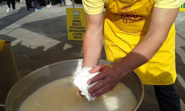 Mentre al nord molti allevatori toscani partecipano al presidio davanti alla Lactalis di Ospedaletto Lodigiano, si moltiplicano le iniziative sul territorio regionale. La guerra del latte a Firenze oggi ha avuto le braccia di Anna Signorini e Giuseppe Corsini, allevatori d'altura a Cutigliano nel pistoiese (a quota 1300 metri), che hanno 'lavorato' e offerto latte, ricotta e formaggi di loro produzione ai visitatori di Food&Wine, la manifestazione espositiva organizzata dall’Associazione Cuochi, che si tiene alla Stazione Leopolda.