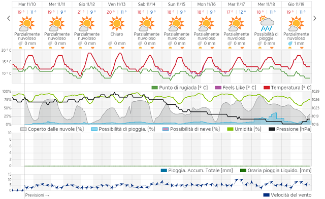 Nel frattempo davvero poco o niente da segnalare, se non l'ulteriore invecchiamento della campana anticiclonica, destinata ad un primo debolissimo cedimento sul comparto orientale della penisola, a partire dal 18-19 novembre, che vedrà solo una maggiore copertura nuvolosa sulle nostre province centro-orientali.