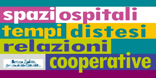 Le parole chiave presenti nelle stampe dell’invito sintetizzano cosa sia il ‘Senza Zaino’.