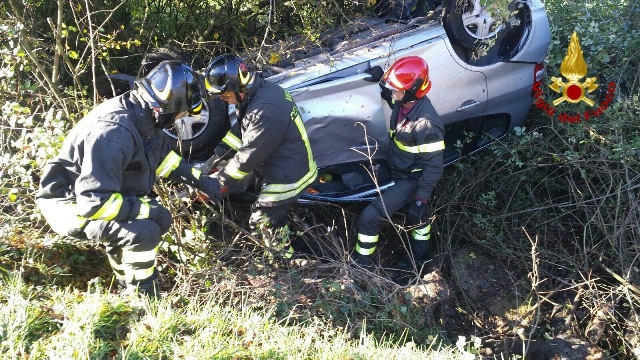 All'arrivo del personale dei vigili del fuoco il conducente, un uomo del 1953, era già uscito dalla vettura e preso in carico dal servizio 118. La vettura è stata recuperata dai vigili del fuoco con una autogru.