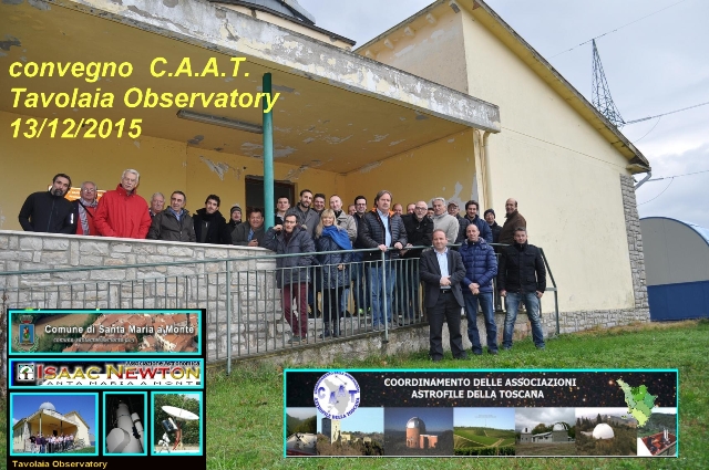 Si riscontra un grande successo di presenze al convegno C.A.A.T. ( Coordinamento Associazioni Astrofile della Toscana) di Santa Maria a Monte che si e' tenuto Domenica 13 Dicembre all’ Osservatorio di Tavolaia.