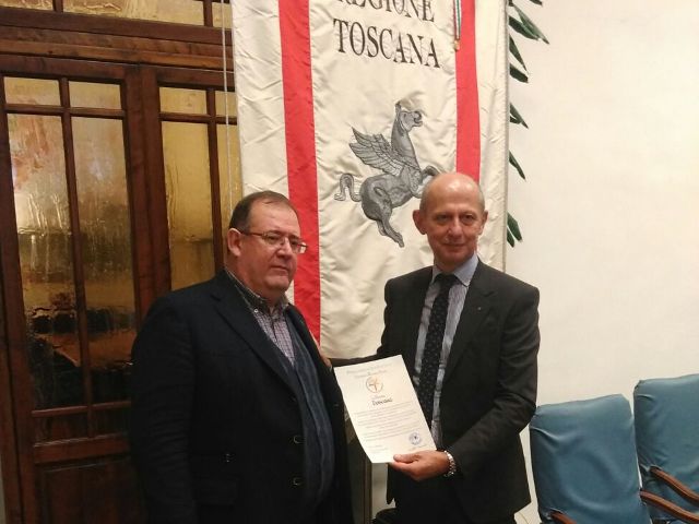 Durante la presentazione è stato consegnata all’assessore Cei la pergamena istitutiva dell’Itinerario Romea Strata.