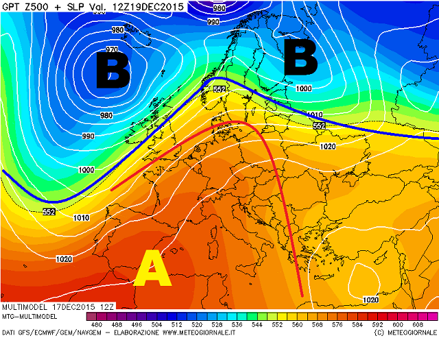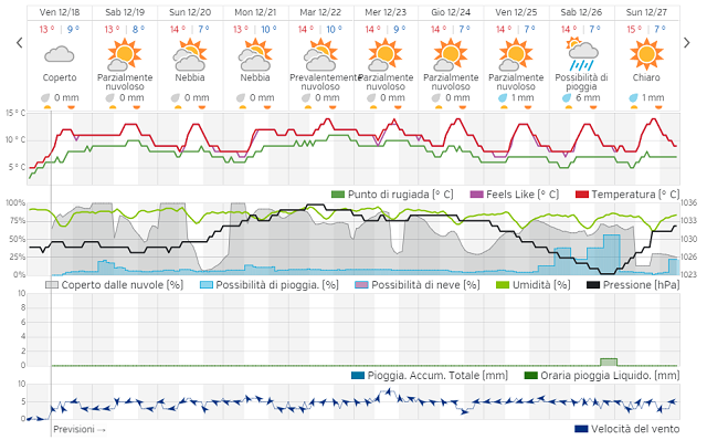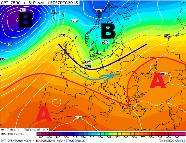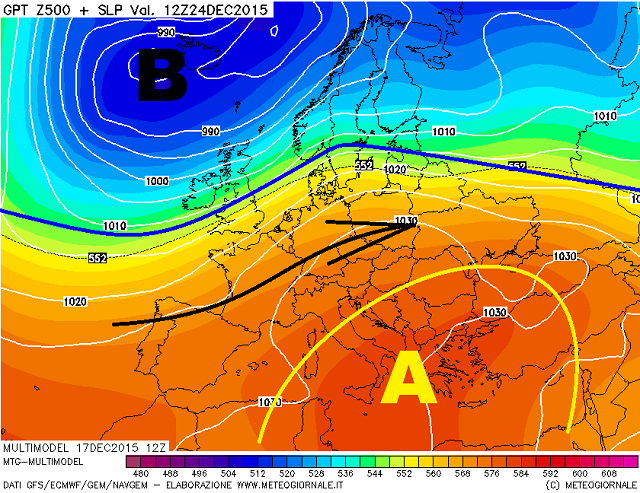 Si tratterà di un primo impercettibile cambiamento di pattern, con l'anticiclone che tra la vigilia di Natale ed il giorno successivo, si sposterà verso Est, sospinto da aria più umida ed instabile, in entrata da Nord-Ovest e che permetterà nel giorno di Santo Stefano il riaffacciarsi di un primo peggioramento del tempo, ovviamente tutto da contemplare dal punto di vista precipitativo.