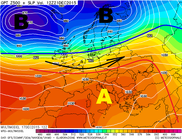 La situazione barica sull'Italia ancora non trova una concreta possibilità di sbloccarsi, ed anche i prossimi giorni trarranno linfa da quell'andirivieni fatto di nubi basse, foschie dense, rare schiarite e localizzate pioviggini, attendendo solo a fine step previsionale un timido e temporaneo impulso depressionario.