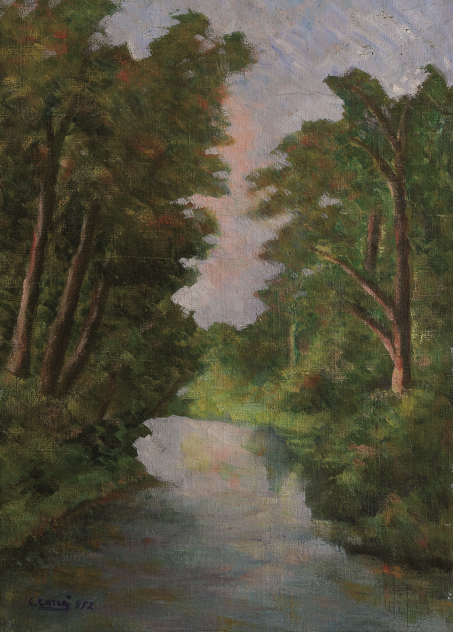 In particolare Carrà era affascinato dal corso d’acqua che scorreva in mezzo alla pineta a Forte dei Marmi. Usciva la mattina, spesso accompagnato dal figlio Massimo, e dipingeva il mare, le pinete e appunto il Fiumetto.