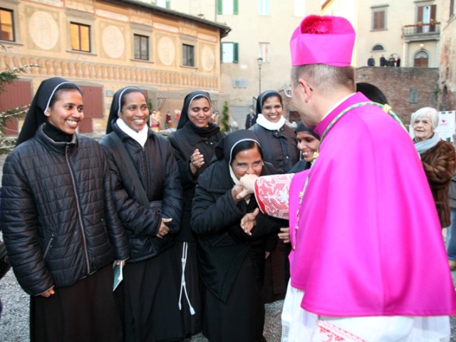 Il vescovo si è poi cambiato d'abito per dirigersi in processione con gli altri vescovi della Toscana in Duomo per celebrare l'apertura della porta santa del Giubileo straordinario voluto da papa Francesco. Nelle brevi visite private che ha ricevuto anche il suo predecessore, monsignor Tardelli, adesso a capo della diocesi di Pistoia.
