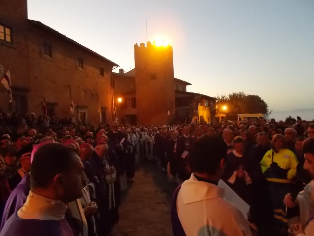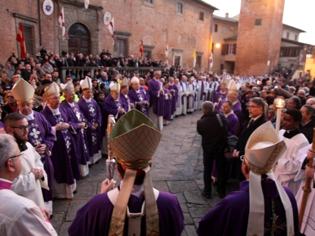“Saluto anzitutto i presenti: il cardinale Betori, mons. Fausto, i vescovi della Toscana e di altre diocesi italiane, mons. Morello Morelli con i preti della diocesi, i religiosi e le religiose, la comunità cristiana di questa terra e tutti coloro che qui conducono la loro vita, i giovani e gli amici, tanti, che mi accompagnano da Pavia, verso i quali non viene meno il legame di affetto e di condivisione che, profondamente radicato, vive e avrà nuove opportunità. Saluto anche le istituzioni e le autorità. A tutti grazie per l’accoglienza e la cordialità.