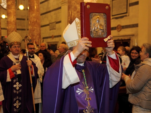 “La liturgia che celebriamo oggi è carica di significati: è celebrazione che ci introduce negli ultimi passi verso il Natale, verso il venire di Dio in mezzo a noi; è evento in cui abbiamo aperto a San Miniato la porta santa, per un tempo di grazia, il Giubileo, nel dono della misericordia; è momento in cui viviamo l’inizio del ministero episcopale nella diocesi da parte mia, nuovo vescovo di San Miniato. Tutto questo viene illuminato dalla Parola di Dio che abbiamo ascoltato e dai gesti liturgici che poniamo”.