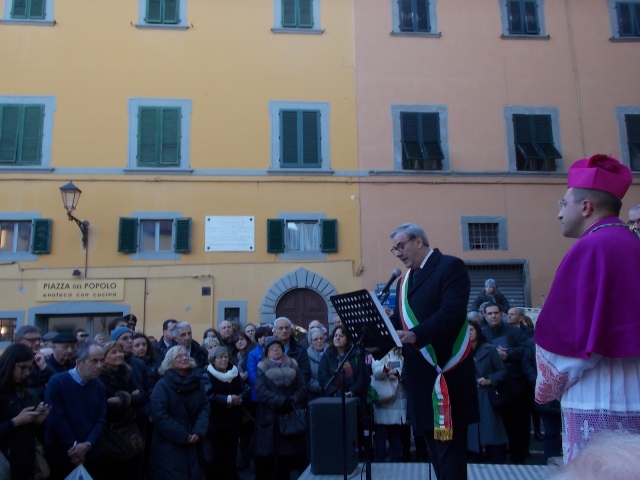 Il vescovo è arrivato da via Ser Ridolfo ed è sceso alle porte di piazza San Domenico, accolto dal sindaco Vittorio Gabbanini e da Don Morelli. Nel palco allestito in piazza ha prima parlato Gabbanini, col compito di presentare la sua città, poi il nuovo vescovo che ha ringraziato per il saluto e il calore dei fedeli, alcuni dei quali arrivati anche da Pavia. Segue l'incontro con i giovani in San Domenico e la cerimonia di insediamento con la presenza del cardinale Giuseppe Betori, arcivescovo di Firenze.