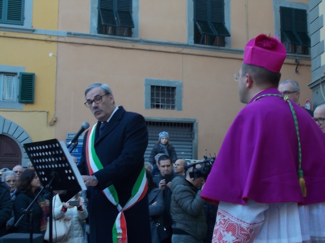 Il suo intervento, come un passaggio del testimone, è passato da Del Corona, leggendo dei passi delle sue memorie al momento del suo arrivo in città nel 1875."San Miniato apre un cuore più grande della porta che ha aperto per il Giubileo", conclude Morelli.