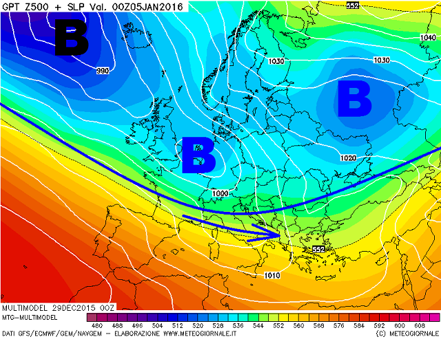 Stavolta, la formazione del minimo barico pare profilarsi dislocata verso Nord-Est, con conseguente abbassamento verso lo Jonio attorno al giorno 6, con la Toscana ai margini dei fenomeni più intensi e maggiormente sventagliata dai venti freddi in elevazione dal nucleo in scorrimento verso Sud-Est.