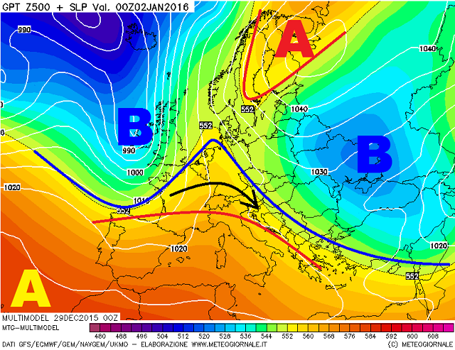 Un contesto finalmente oserei dire dinamico, con le prime precipitazioni che giungeranno nel secondo giorno dell'anno, quando anche la neve tornerà a fare la sua comparsa sui nostri monti assetati e spogli, con quote dello Zero Termico che entro la serata caleranno attorno ai 1000-1100 metri.
