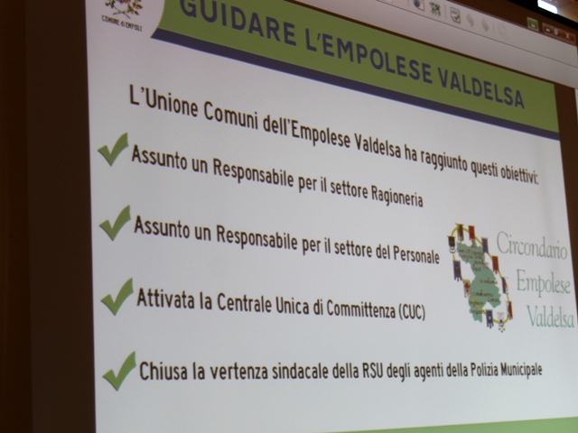 Brenda Barnini racconta di un 2015 di stagnazione da parte dell'Unione. Negli ultimi dodici mesi l'Unione "è comunque riuscita a stare in piedi da sola, grazie alla collaborazione fra noi sindaci, fattiva tramite il 'prestito' di due figure professionali che dai propri uffici si sono spostati a lavorare per l'Unione". Secondo il sindaco di Empoli, la risoluzione della vertenza con i vigili urbani è un'altra delle conseguenze della sinergia fra le undici amministrazioni.