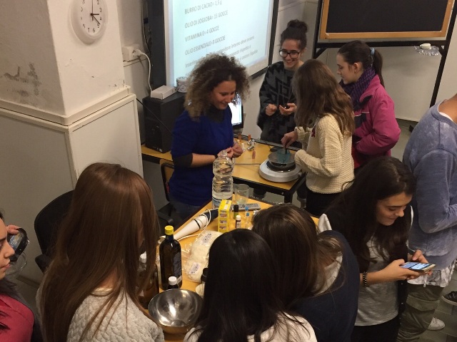 I ragazzi si sono ritrovati dopo l’orario scolastico nei locali dell’istituto e, guidati dalla loro insegnante, hanno realizzato vari balsami per labbra per loro stessi e i loro amici. “Non è stato così complicato” hanno riconosciuto alla fine del laboratorio “Sono bastati pochi ingredienti, come olio di jojoba, vitamina E, burro di caritè e di cacao ed olio essenziale profumato, e un’attrezzatura piuttosto semplice: una bilancia elettronica, alcuni bicchieri, una piastra elettrica e qualche cucchiaio.”