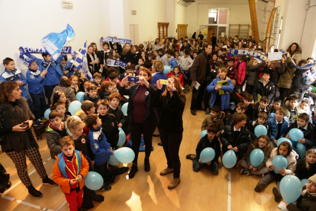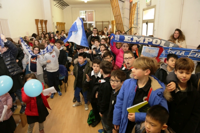 L’assessore allo sport del Comune di Empoli Fabrizio Biuzzi è stato ospite della ‘Scuola del Tifo’, iniziativa del Centro di Coordinamento dell’Unione Clubs Azzurri, questa mattina, mercoledì 20 gennaio, presente all’interno della scuola Santissima Annunziata. Riuniti per l’occasione tutti gli studenti di ogni ordine e grado, d’altra parte l’occasione era davvero particolare visti gli ospiti: l’allenatore dell’Empoli Marco Giampaolo e il capitano Massimo Maccarone. Insieme a loro anche il presidente dell’Unione Athos Bagnoli e Claudio e Sandra Del Rosso, genitori del grande tifoso Emiliano, ultrà scomparso nel 2004 a cui è stata intitolata la Maratona dello stadio ‘Castellani’. La dirigente scolastica dell’istituto Maria Franca Cagliata ha introdotto la mattinata.