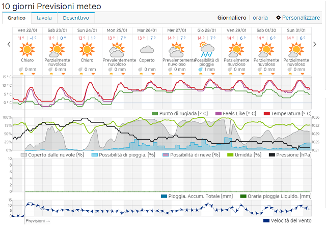 Previsioni meteo a medio termine 23 gennaio - 31 gennaio