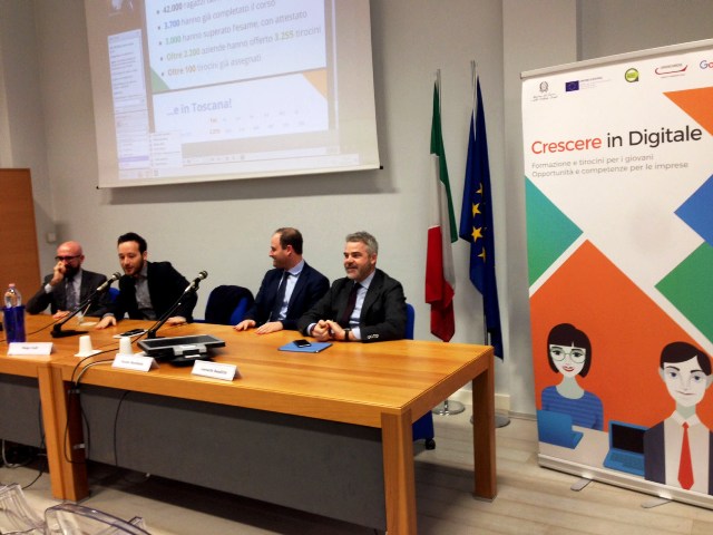 Per primi hanno completato la formazione di Google, oggi è arrivato il momento di incontrare le imprese: trenta giovani disoccupati che a Firenze hanno superato il corso di formazione on line - e sono diventati digitalizzatori - hanno potuto conoscere il gruppo di quaranta aziende interessate alle loro competenze. Tutto questo è avvenuto nell’auditorium di PromoFirenze durante il laboratorio Crescere in Digitale, che ha coinvolto in streaming tutte le Camere di Commercio della regione e complessivamente in Toscana ha interessato 80 ragazzi NEET (Not engaged in Education, Employment or Training).