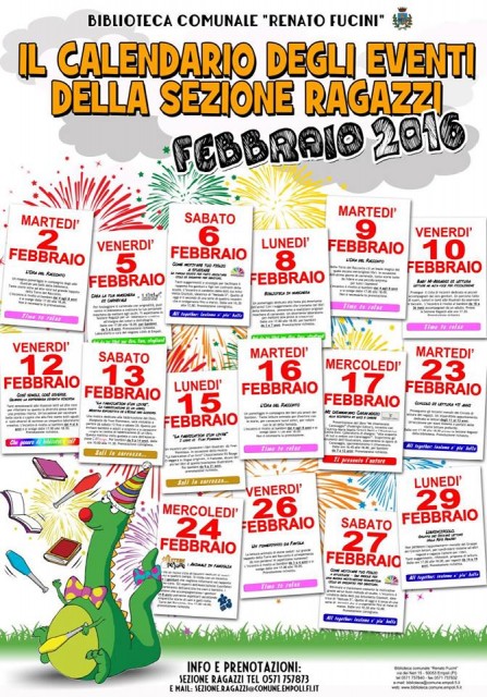 Anche il mese di febbraio regala tanti pomeriggi di svago e divertimento ai bambini e ai loro genitori frequentatori affezionati della Sezione Ragazzi della biblioteca comunale ‘Renato Fucini’ di Empoli.