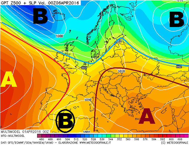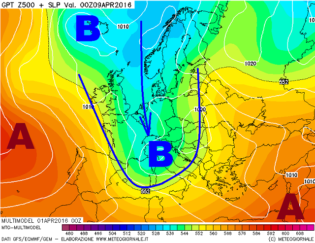 Inutile al momento pianificare tempistiche sull'esatta traiettoria del minimo depressionario, quel che potrebbe accadere è sicuramente un moderato calo delle temperature che avrà il pregio di riportarci entro le medie del periodo, potenzialmente, favorire i primi temporali stagionali, con annessi fenomeni localmente violenti, ma ad oggi siamo ancora nel campo delle ipotesi, trattandosi di una previsione a 192 ore.