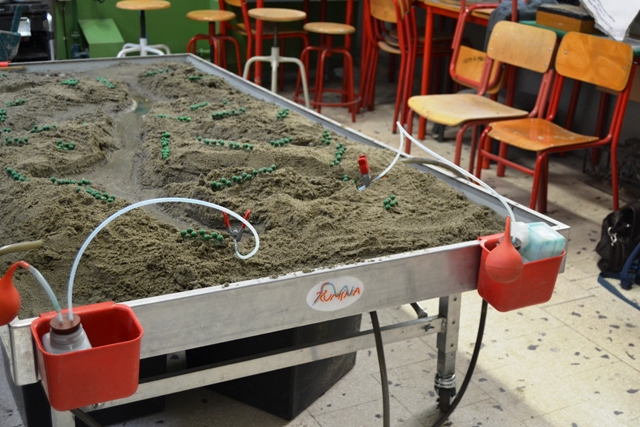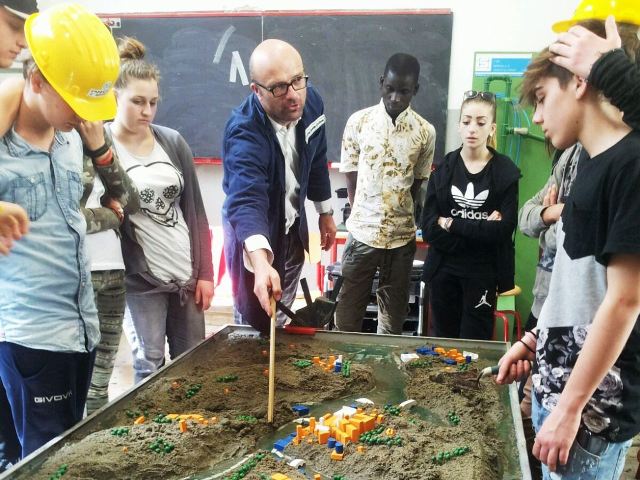 Nei prossimi giorni le attività proseguiranno con il laboratorio Flumina, ideato e condotto dagli operatori di Eta Beta Onlus. Flumina è un sistema di simulazione fluviale capace di riprodurre un bacino idrografico, evidenziando in maniera semplice, intuitiva e coinvolgente fenomeni fisici importanti e complessi accanto a fatti di geografia umana come il popolamento e l’espansione urbana. Grazie a Flumina i ragazzi sono direttamente coinvolti: sono loro stessi a lavorare come veri e propri tecnici e operatori, mettendo direttamente “le mani nel fiume”, per costruire e gestire opere e sistemazioni idrauliche presenti anche nella realtà come argini, paratoie, casse di espansione, etc.