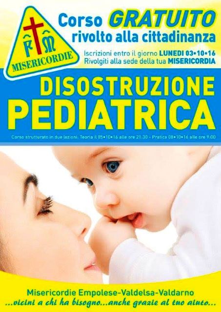 Arriva un interessante corso gratuito proposto dal nostro staff formazione. Si tratta della disostruzione pediatrica, ovvero delle tecniche che permettono di rimuovere corpi estranei dalla gola dei bambini qualora purtroppo capiti questa situazione. Soprattutto per le mamme, ma in generale per chi ha a che fare con i piccoli, si tratta di un'occasione da non perdere vista l'importanza dell'argomento. Il corso è strutturato in due lezioni che si tengono presso la nostra sede:
