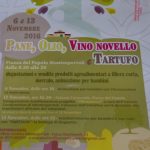 'Pane, olio, vino novello e tartufo' è il nome della manifestazione che si terrà le domeniche 6 e 13 novembre in Piazza del Popolo a Montespertoli dalle 9.30 alle 20. Un unico evento - e quindi non più feste separate - per mettere in mostra le eccellenze del territorio, senza dimenticare l'aspetto solidale che ha sempre avuto il Comune della Valdelsa. Dalle olive di proprietà del Comune nasce infatti 'OlioNostro', un prodotto la cui vendita è finalizzata a sostenere le popolazioni africane della Repubblica del Saharawi.