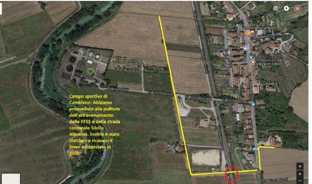 Elaborato in base a una serie di sopralluoghi effettuati in modo congiunto dai tecnici del Consorzio di Bonifica e del Comune di Castelfiorentino, il piano si è concentrato in primo luogo nel territorio compreso tra via della Granocchiaia (StilNeon) e la frazione di Cambiano, dove è stata effettuata la ripulitura dell’attraversamento delle FFSS e della strada comunale Sibilla Aleramo, la realizzazione di un nuovo attraversamento sotto quest’ultima, la ricavatura e la riprofilatura del Rio della Pescina e del suo affluente (compreso il borro delle fate e i suoi affluenti), la pulizia dei fossi circostanti; in prossimità del capoluogo, in particolare, sono stati anche ripristinati gli attraversamenti delle FFSS e di via della Granocchiaia.