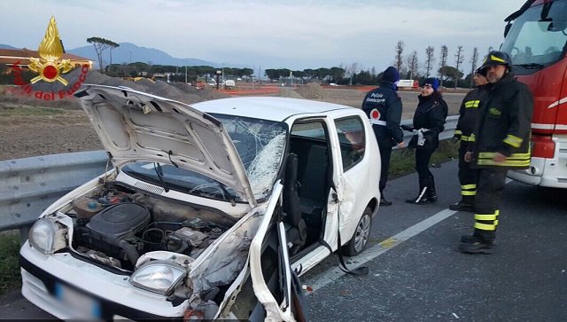 Incidente oggi, mercoledì 18 gennaio, sulla via Aurelia a Migliarino Pisano, nel territorio comunale di Vecchiano. Un'auto e un furgoncino si sono scontrati nei pressi dell'ingresso dell'autostrada.