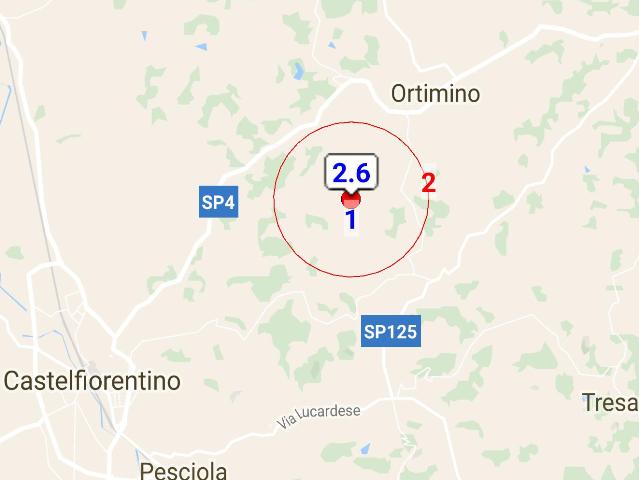 Un terremoto di magnitudo 1.4 è stato avvertito alle 16.21 a una profondità di 10 km tra Castelfiorentino e Montespertoli. Ma la vera scossa è stata quella di magnitudo2.6, partita alle 16.08 con epicentro tra Cambiano (Castelfiorentino) e Ortimino (Montespertoli). La profondità è stata di 8 km.