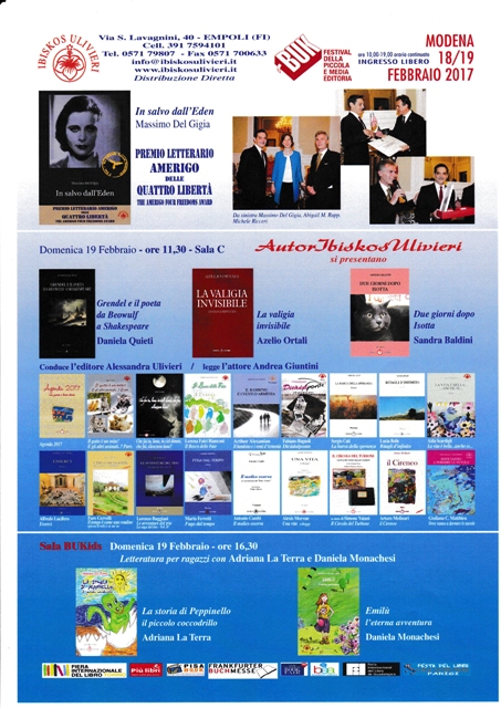 Gli esponenti della casa editrice 'Ibiskos' di Empoli saranno presenti al 'Buk Festival' di Modena domenica 19 febbraio dalle 10 alle 19. L'ingresso alla manifestazione sarà libero.